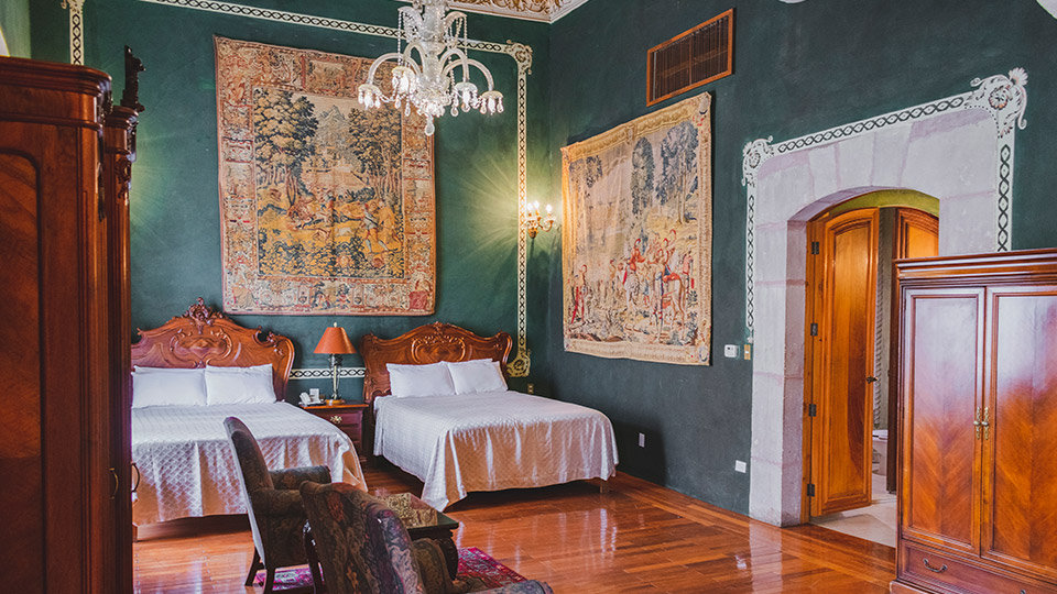 La Suite El Marqués es la estancia donde el poder reside. Con su paleta verde esmeralda y tapices europeos, esta habitación evoca la autoridad, la opulencia sin límites y la astucia de Don Juan Antonio de Urrutia y Arana. Un refugio para quienes entienden el peso de la historia y el arte del buen vivir.