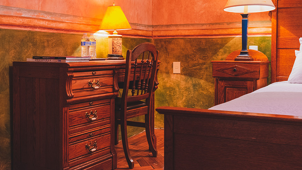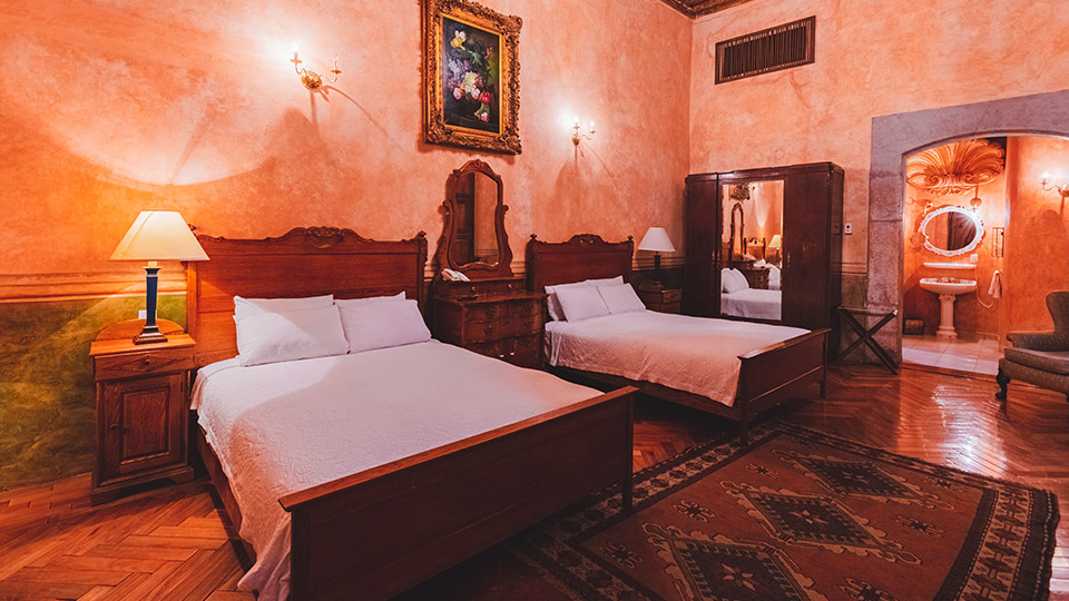 Esta habitación es, irónicamente, la que menos se usaba en la casa virreinal, pues Doña Paula consideraba que su opulencia no le hacía justicia a la sobriedad de los monarcas. Por ello, la leyenda dice que el silencio aquí es el más pesado de todo el hotel. Se cuenta que si te sientas en el escritorio y trazas mentalmente tu próxima gran decisión (tipo, ¿deberías emprender ese negocio?), por un momento verás tu reflejo en el espejo del armario con ropa de la Inquisición. No es una amenaza, es el espíritu de Isabel la Católica analizando la moralidad de tus negocios. Si ella aprueba, al día siguiente encontrarás una moneda antigua en el cajón del buró; si no, te despiertas con una culpa tan grande que hasta te dan ganas de confesar que te comiste el último pan de dulce del desayuno.
